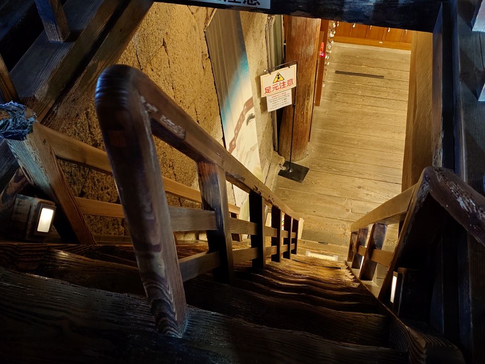 中は元の構造をできるだけ保存した形の資料館になっています。お城にはよくある急階段も。