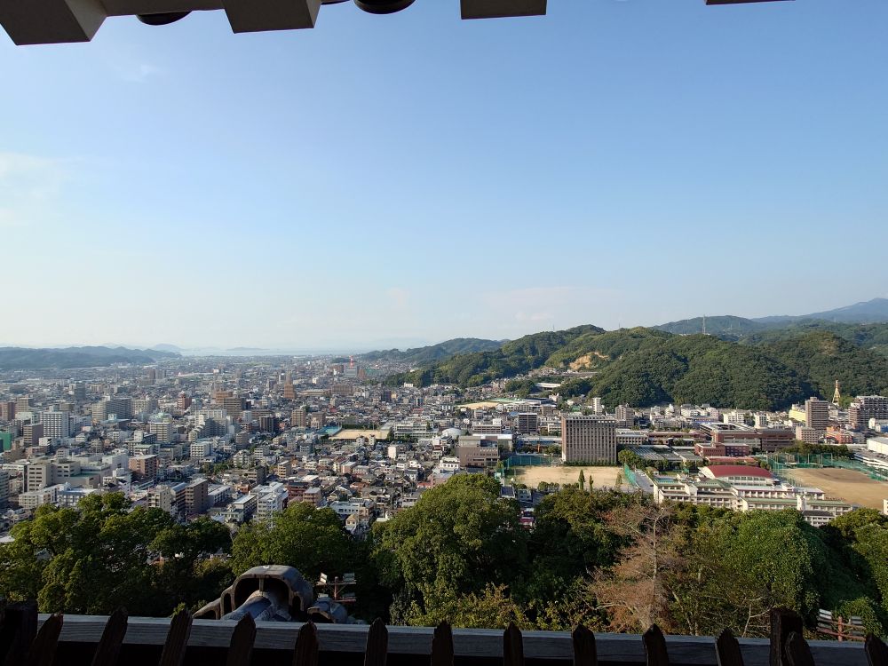 天守頂上より北側を眺めます。はるか向こうに、先ほど渡って来た来島第一・第二大橋が見えますね。