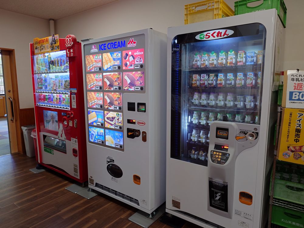 お湯に浸かって出てくると、牛乳やアイスの自販機が出迎えます。